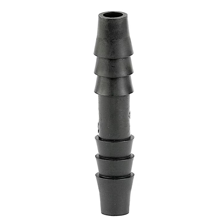 This is a High-Quality Polyurethane straight 1/4" to 1/4" multi-barb hose connector in Black. Works great for slow flow applications.
