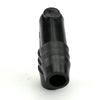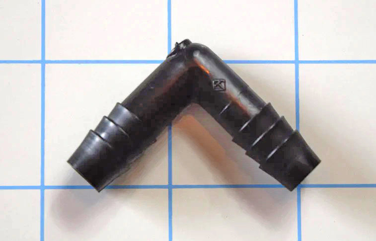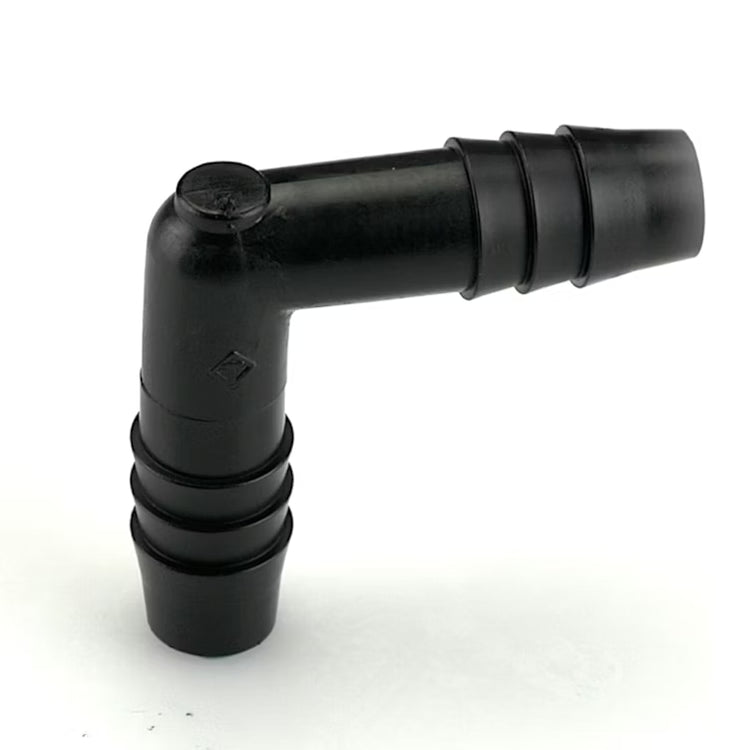This is a High-Quality Polyurethane 90-degree 3/8" to 3/8" multi-barb hose connector in Black. The silicone material used in all our nozzles is soft enough to accommodate this adaptor no matter what the bore size of the nozzle.