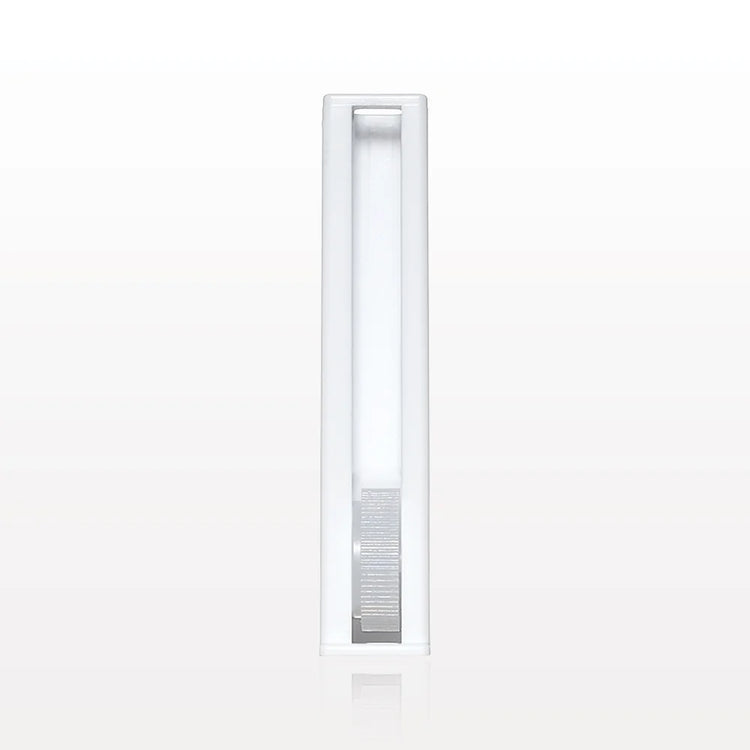 This is our new large white precision control high quality ramp style flow valve that will accommodate from 1/4" to 3/8" outside diameter thick or thin wall rubber, silicone or vinyl tubing. It works perfectly on any of our silicone tubing selections. Valve will accurately control fluid flow in flexible tubing from zero to full flow with the use of the grooved thumb control wheel for adjustment. This clamp is approximately double the length of our other offerings to allow for a much higher level of precision flow control of your enema solutions.