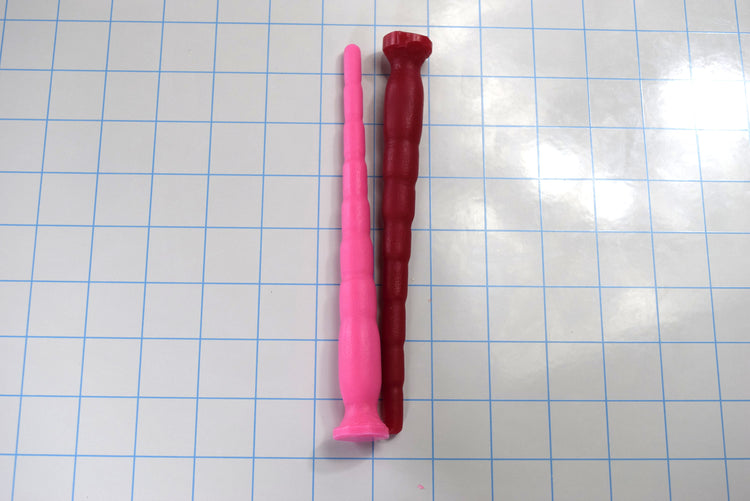 Here is another addition to the multi-dimensional flexible urethral stretching silicone sound series. With its smaller rounded tip at approximately 8mm, this one is perfect for the next stage of stretching to enable the full insertion of larger sounds. Similar to our 6-14mm stretching sound. We had several requests from users of the 6-14mm sound to make the next step in sizes available. Like the 6-14mm sound, it also goes in smoothly as each segment stimulates and spreads the way for the following slightly larger segment to do the same. The total insertable length is approximately 6" up to the flange, with a deeper retaining valley just in front of the base. This probe can be purchased with an open core for extended-length wear to accommodate drainage or with a completely solid configuration.