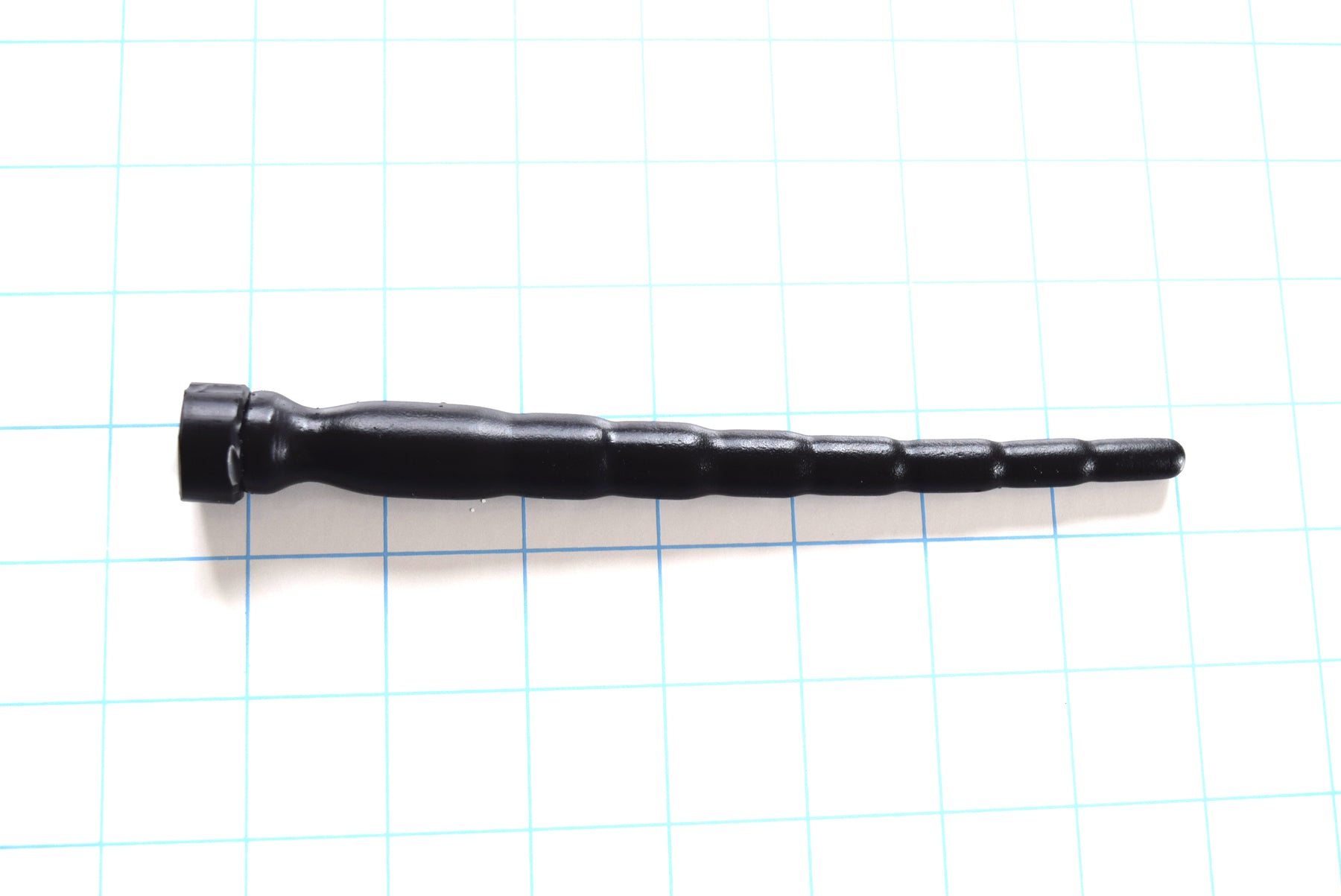 Here is another addition to the multi-dimensional flexible urethral stretching silicone sound series. With its smaller rounded tip at approximately 8mm, this one is perfect for the next stage of stretching to enable the full insertion of larger sounds. Similar to our 6-14mm stretching sound. We had several requests from users of the 6-14mm sound to make the next step in sizes available. Like the 6-14mm sound, it also goes in smoothly as each segment stimulates and spreads the way for the following slightly larger segment to do the same. The total insertable length is approximately 6" up to the flange, with a deeper retaining valley just in front of the base. This probe can be purchased with an open core for extended-length wear to accommodate drainage or with a completely solid configuration.