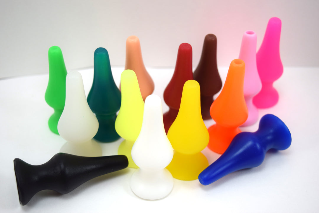 Here is a concave-contoured version of the retention style nozzles. This is a little smaller than the SPD1.5. It is also available in several different Shore A Durometer levels of softness. This nozzle has a 1.5" long concave tapered tip that is easily inserted with excellent retention properties.