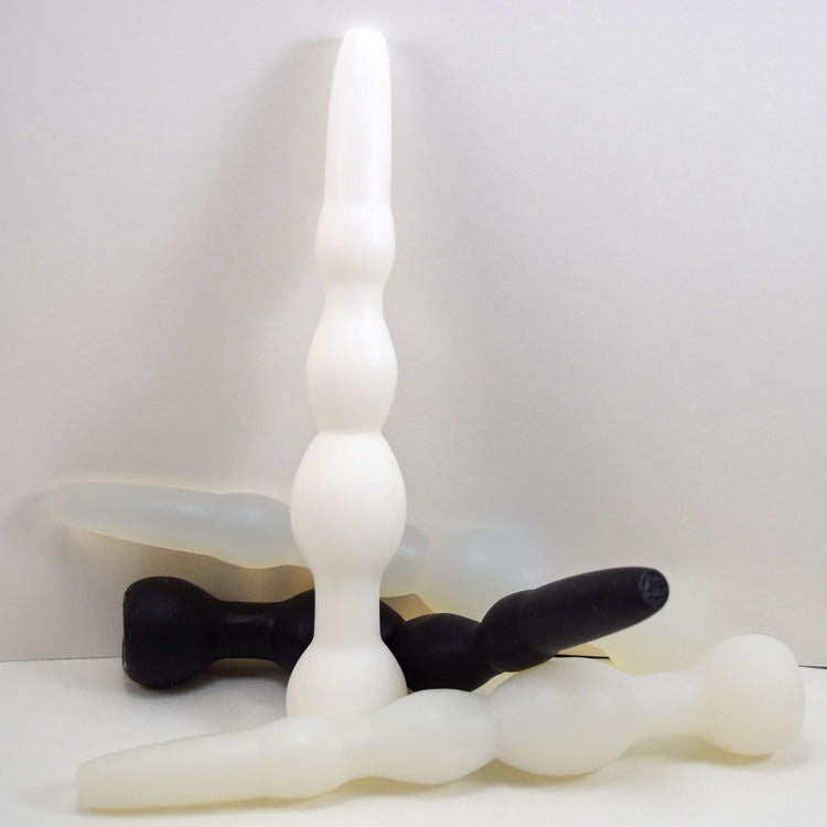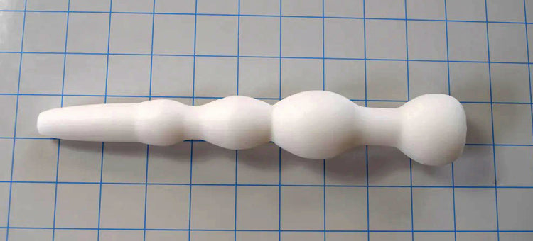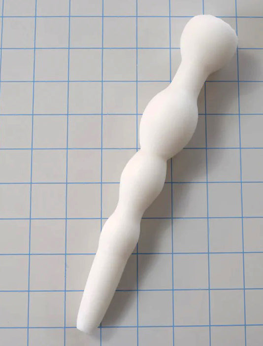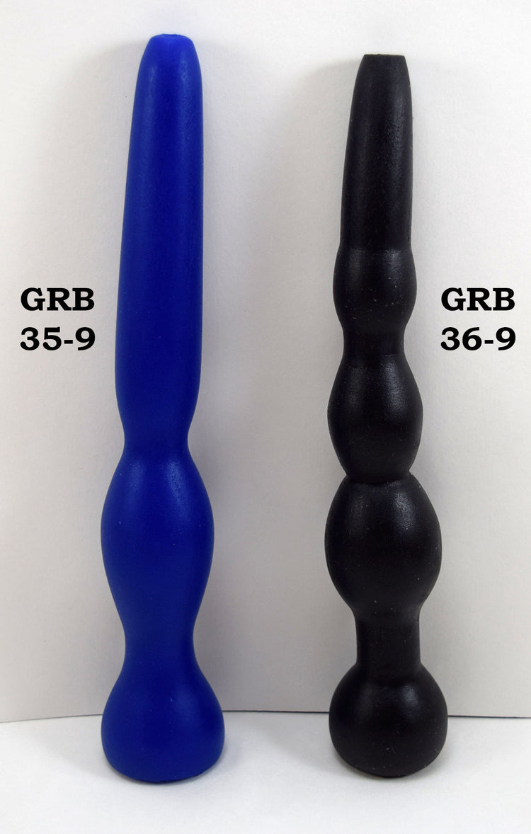 Here is a great nozzle for the new or frequent user wanting a retaining ball style nozzle with a smaller sized retaining expansion ball. This model is great for amateur users, ladies, or small-frame individuals. The GRB36-9 has a 9” long total length (allowing 7.5” for insertion). It starts off with the 2.25" long, approximately 3/4" diameter (19mm) rounded tapered tip. The first small ball expansion is 1" in diameter (25mm), followed by a 0.7" (17.7mm) valley which is followed by another 1.1" diameter ball (28mm) and 0.75” (19mm) accompanying valley. The final graduated retaining ball is a 1.4” diameter (35.5mm) smooth oval-shaped ball with a 1” long accompanying retaining valley of 0.75” (19mm). The final retaining ball allows for a most comfortable filling experience and will maintain retention during filling and minimize leakage. The multiple graduated balls and valleys allow you options to place the nozzle at your preferred depth.