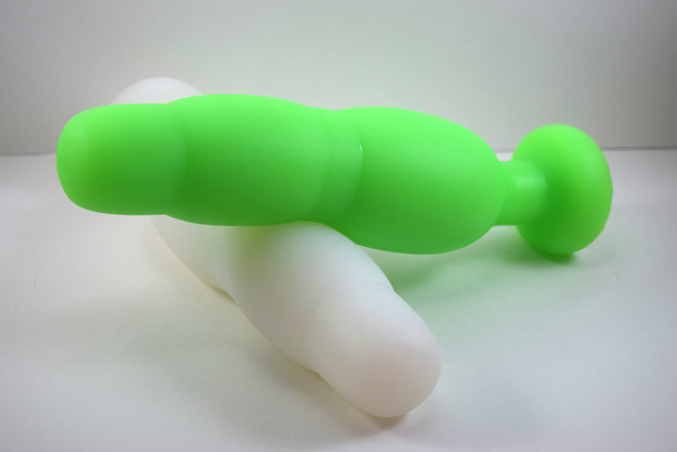 The design idea for this beauty was submitted by an inventive customer who wanted a nozzle that would prevent leakage while maintaining comfort. This unique piece should accomplish just that. The initial tip is approximately 1.8" in diameter for about 1.5" before expanding out to 2.5". The second expansion is separated by a short 2" diameter retaining valley prior to expanding out to the maximum diameter of approximately 3". The final retention valley is approximately 1.5" in diameter by 1.75" in length and designed to comfortably seal the anus both inside and out by expanding back out to the 3" diameter safety flange. It is also available in several different Shore A Durometer levels of softness.