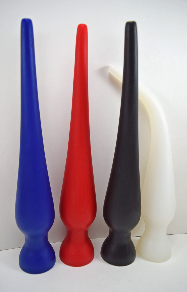 Here is our 12" extra long concave-contoured version of the retention style nozzles. It is available in several different Shore A Durometer levels of softness. This nozzle has a 9" long concave tapered tip that is easily inserted with excellent retention properties.