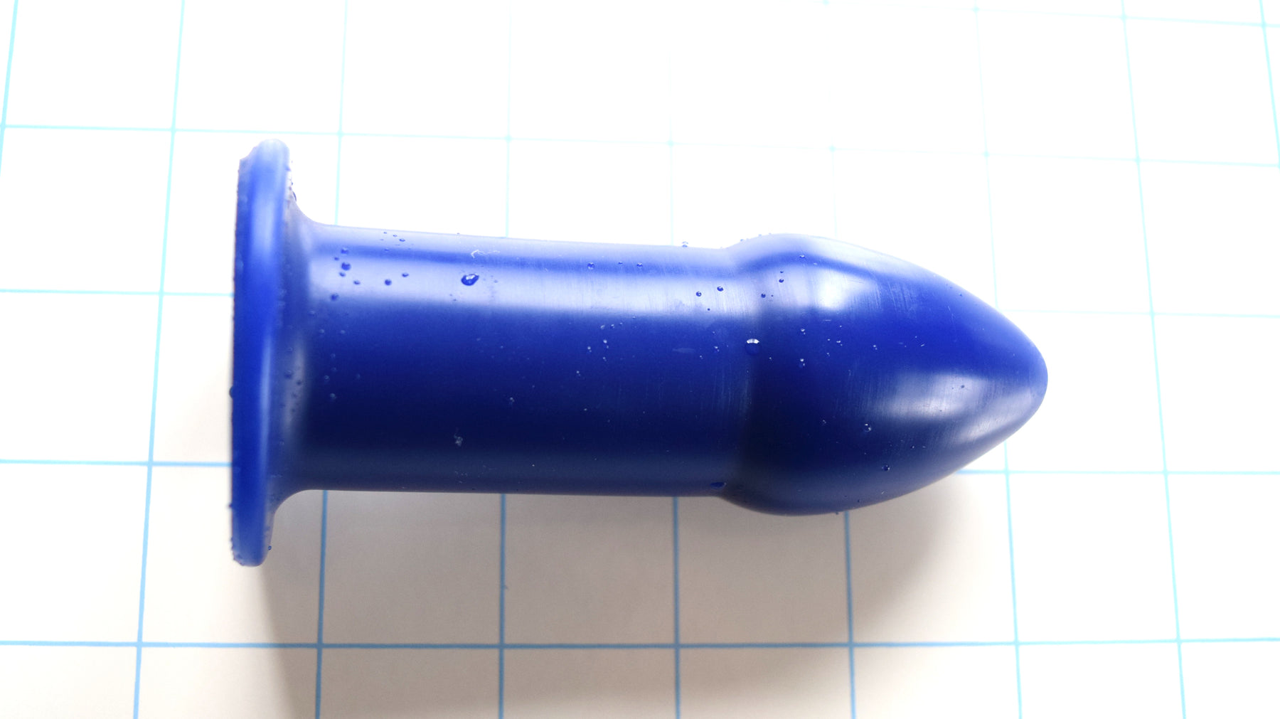 Here is the middle size Rectal Training Dilator we have developed as an enema nozzle. It can also be purchased in a solid version without the open core. There are two larger sizes and two smaller that make up a total of five that can be purchased separately or in a combination set. It is also available in several different Shore A Durometer levels of softness. This nozzle has a nice 4.25" length and 1.5" diameter enlarged tip that shrinks down to a 1.375" diameter by 2.25" length shaft that extends out to the 2" diameter safety flange. With a tapered tip that is comfortably inserted and excellent retention properties. This is a good piece for those of you wanting to do gentle stretching to allow those larger nozzles you have been wanting to try. Can also be used by first timers or beginners with a lot of lubrication and patience.