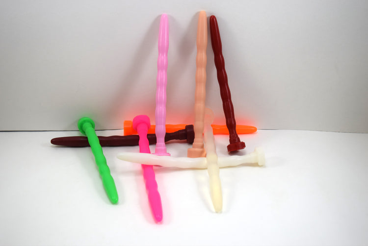 Here is our exquisite RIPPLE-contoured sound design. The long smooth ripples of this piece are like gently rolling waves of water. This model is 6'' long, allowing 5 3/4” for insertion, and starts with an 8mm rounded tapered tip stretching up to 12mm (36 French) just before the first 10mm (30 French) valley. It has five ripple contour segments following the tip with an approximate 12mm (36French) maximum diameter. The five accompanying valleys or grooves are all approximately 10 to 10.5mm (30-31.5 French) up to the retaining valley, which is 8.5mm (25.5 French). The base flange is approximately ½” wide(12.5mm) and has a 10.5mm (31.5 French) slightly tapered flare just before the end.