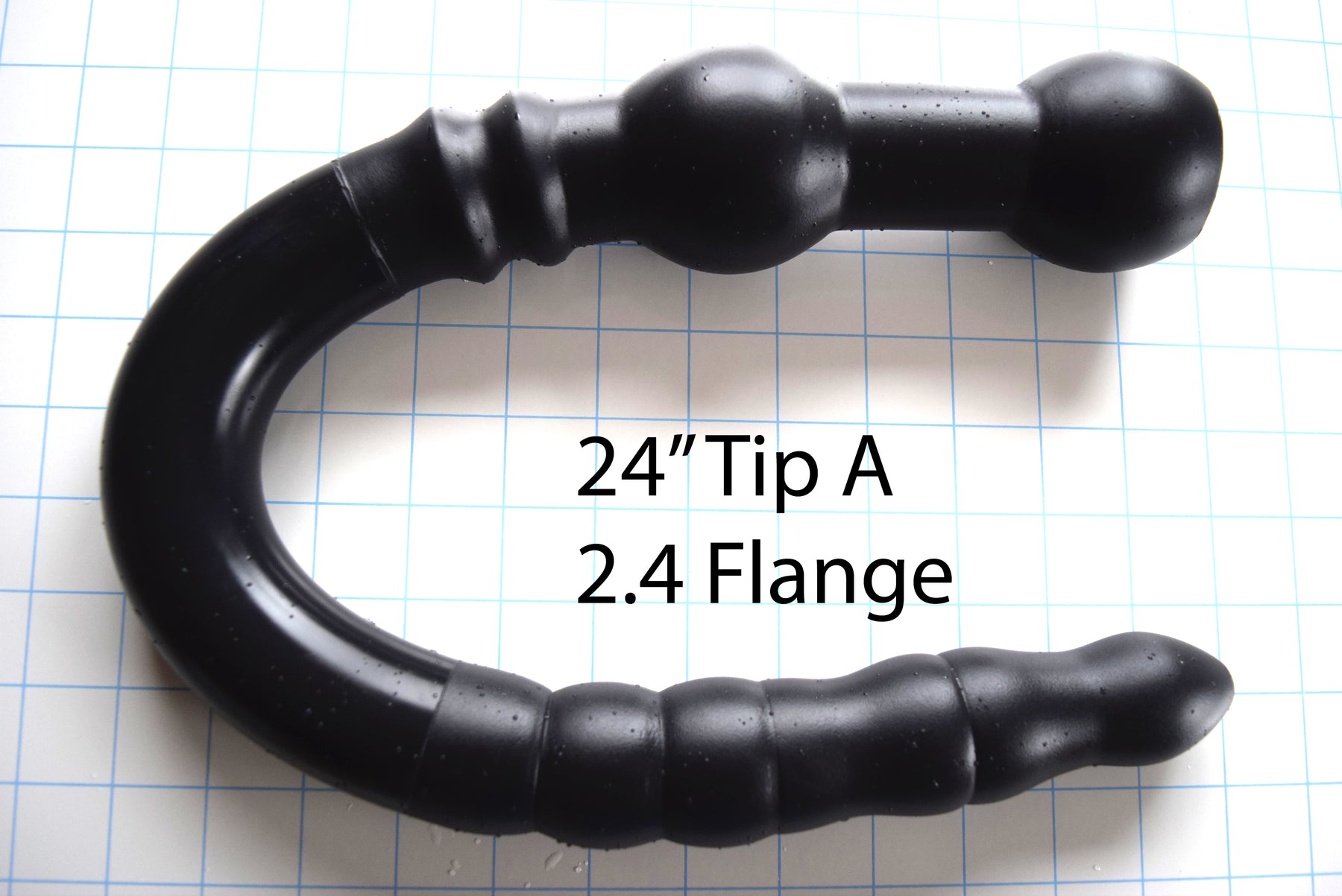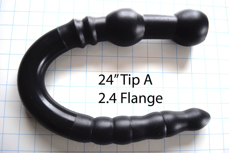 Here is our CT-122 model in the colon tube family, the 122 French, 1.60" (40.6mm) diameter tube can be ordered with a Tip A (Bumpy) or Tip B (Tapered). This colon tube is available with the 2.25” maximum diameter retention flange or the 2.4” Ball flange with double ribs, it can also have no flange base.