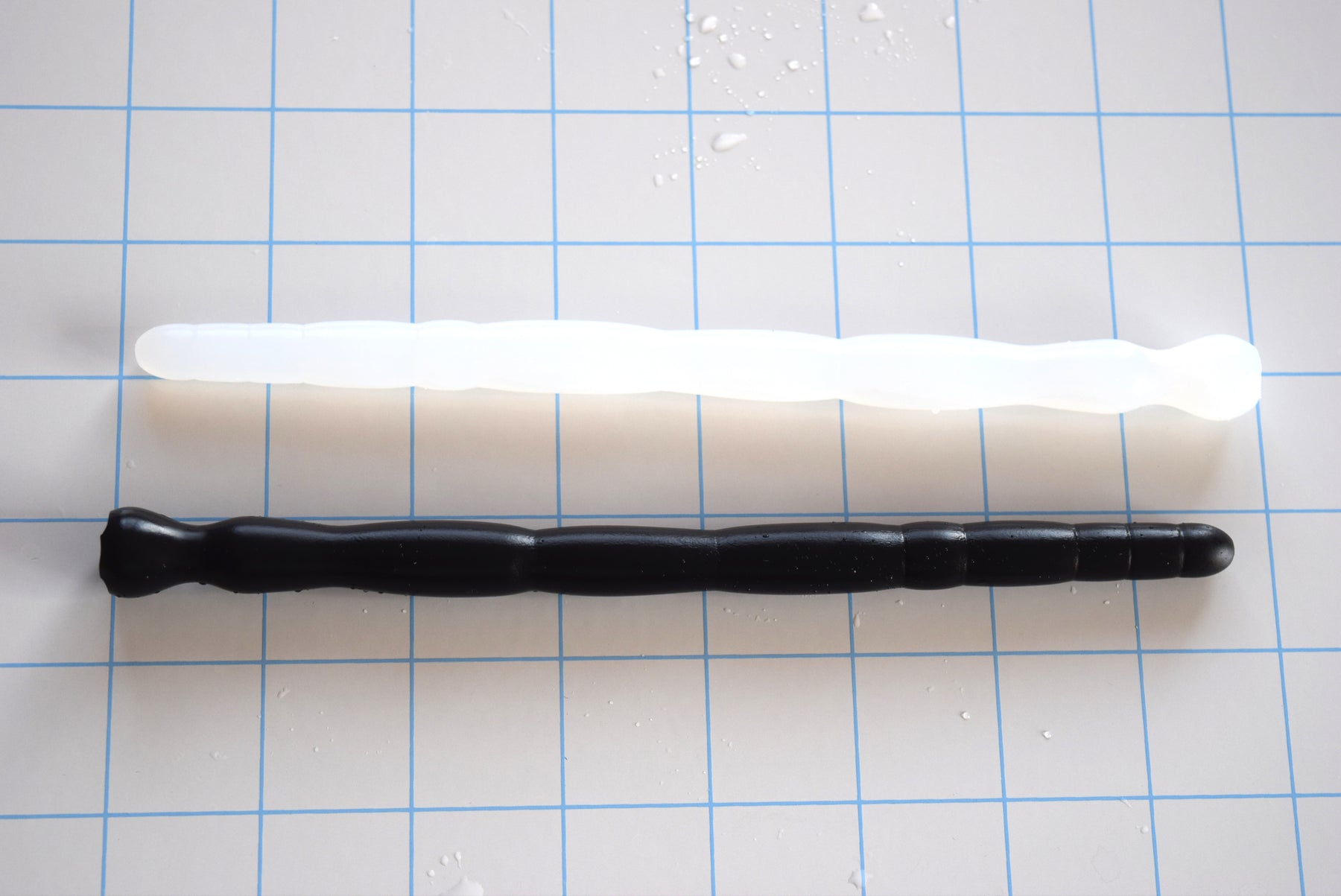 This probe can be purchased with three different sizes of open core for extended-length wear to accommodate drainage or with a completely solid configuration to use as a urethral plug. The silicone material is available in many levels of softness, as shown in the drop list selections. You can make your individual selections as to color, level of softness, and open or solid core type from the drop list boxes.